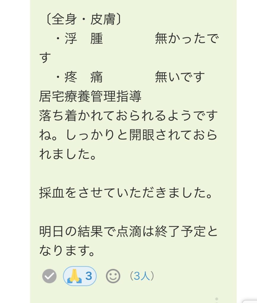 スマホで、ヘルパーさんの報告のホームページや、「MCS」というや訪問診療の先生、ケアマネさん、訪問薬局さん、つなぐアプリ(それは14日には共有事項なしだった)があるのですが、それをこまめにチェック。