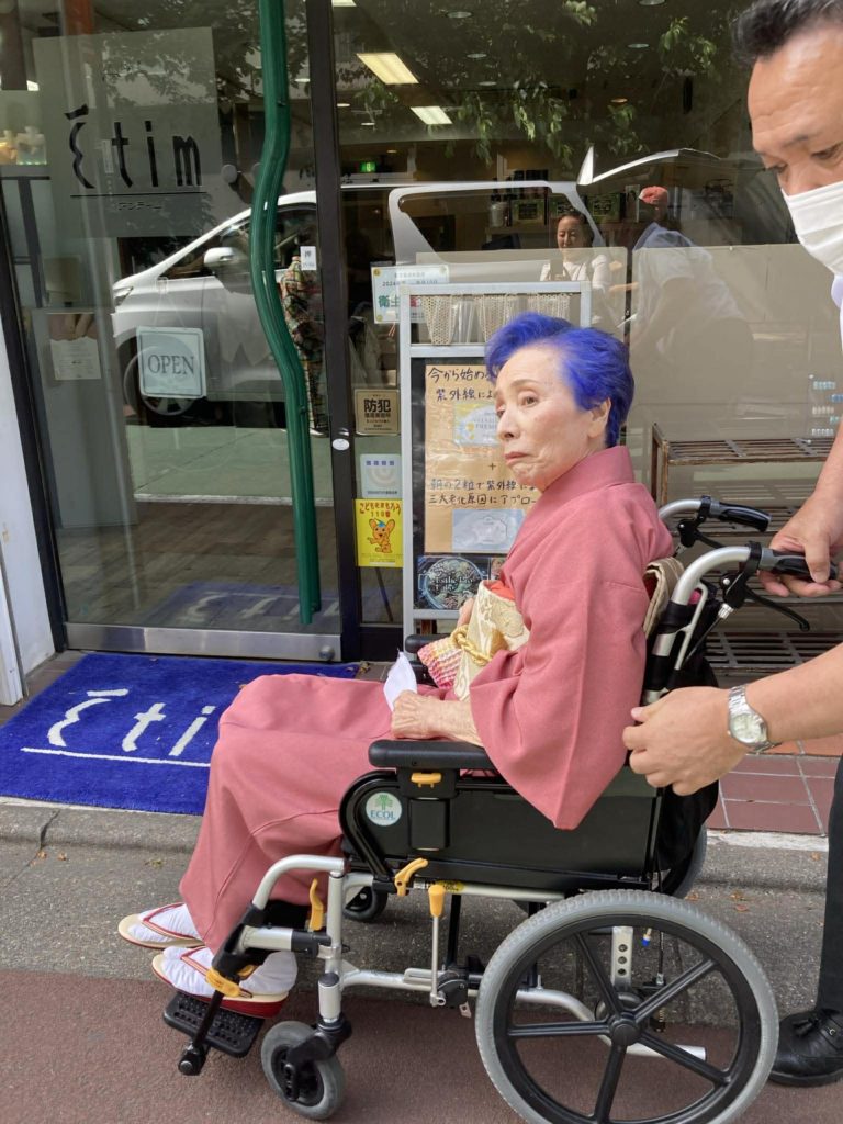 脳梗塞で車いすの母に着物を着せてくれた、美容院の先生に感謝!