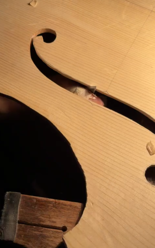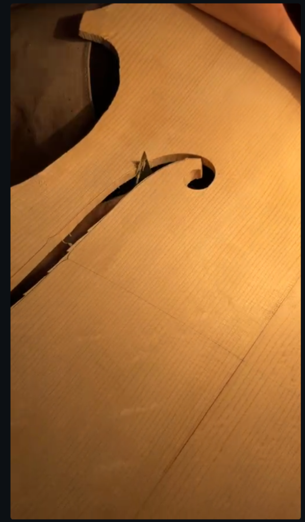それから、バンドソ―という小学校の時に図工室に合った糸のこ、ですよ、あれで切る。