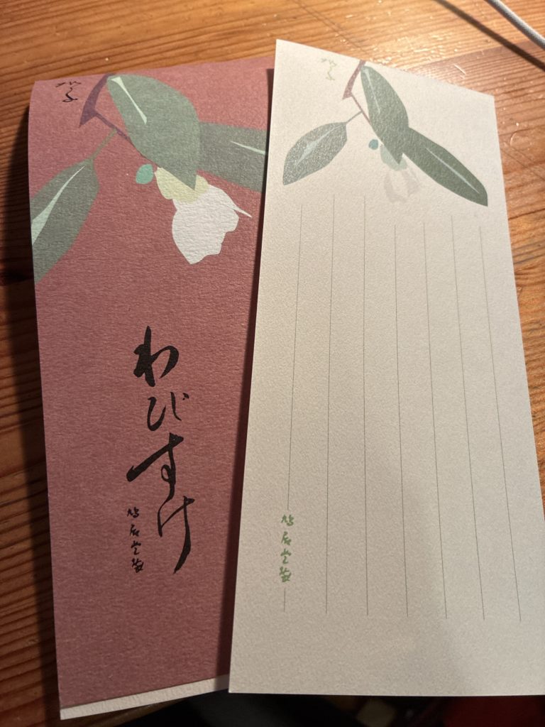 この一筆箋を買ったんですよ、鳩居堂(きゅうきょどう)で。